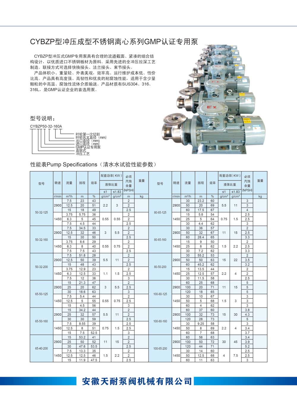 • 产品名称:CYBZP型冲压成型不锈钢离心系列GMP认证专用泵